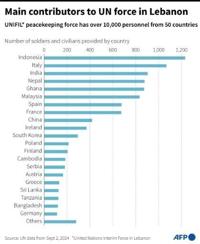 Israeli strikes in Lebanon have killed more than 1,300 people since September 23, according to an AFP tally of official figures, including for Saturday.