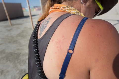 It’s a been a warm, dry season for the Burning Man build — ideal conditions for bugs to spawn. Insects are reportedly blowing up “inches deep” against the commissary tent. They’re embedding in carpets like spilled rice. And judging by a picture on the blog, they're bloodthirsty.
