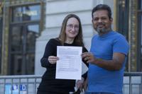 Autumn Looijen and Siva Raj, co-leaders of the school board recall campaign. (Photo: Kevin N. Hume/ SF Examiner)