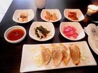 It wasn't long before food began to arrive, however — contra Yelp reviewers bemoaning slow service — and five varieties of banchan (kimchi, tubu choerim, seaweed salad, pickled radish, and fish cakes) were placed in front of me, along with a cup of boricha (a barley tea, and Korea's answer to black tea). Minutes later, dumplings – light and crisp with a flavorful pork filling – arrived along with a tangy dipping sauce.