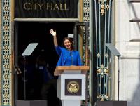 Lieutenant Governor Gavin Newsom swore Breed in shortly before noon Wednesday.