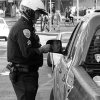 The guy in the mirror has the quintessential guy-getting-pulled-over-face: both bummed and resigned.