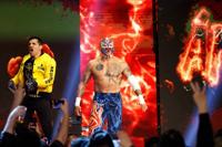 Alex Abrahantes (left) and Rey Fenix (right) entering the arena during the All Elite Wrestling (AEW) Dynamite event at the Cow Palace on Wedne…