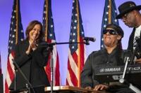 US musician Stevie Wonder performed during a campaign event with US Vice President Kamala Harris in Georgia