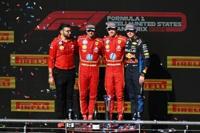 Victory line-up: Charles Leclerc and Carlos Sainz with Max Verstappen on the podium
