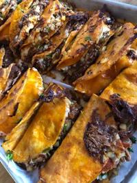 The quesabirria tacos at Tacos El Patrón are a phenomenon of such overpowering deliciousness that they require your immediate attention.