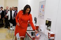 Mayor London Breed picks up a user kit during a tour of a safe injection site simulation at Glide Memorial Church’s Freedom Hall on…