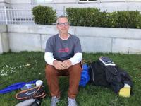 The grass next to City Hall will be Gary McCoy’s home for as long as he can go without food. (Photo: Benjamin Schneider)