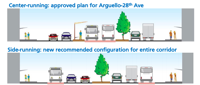 A diagram showing how the Geary BRT project could change, from an SFMTA presentation on May 12. (SFMTA)